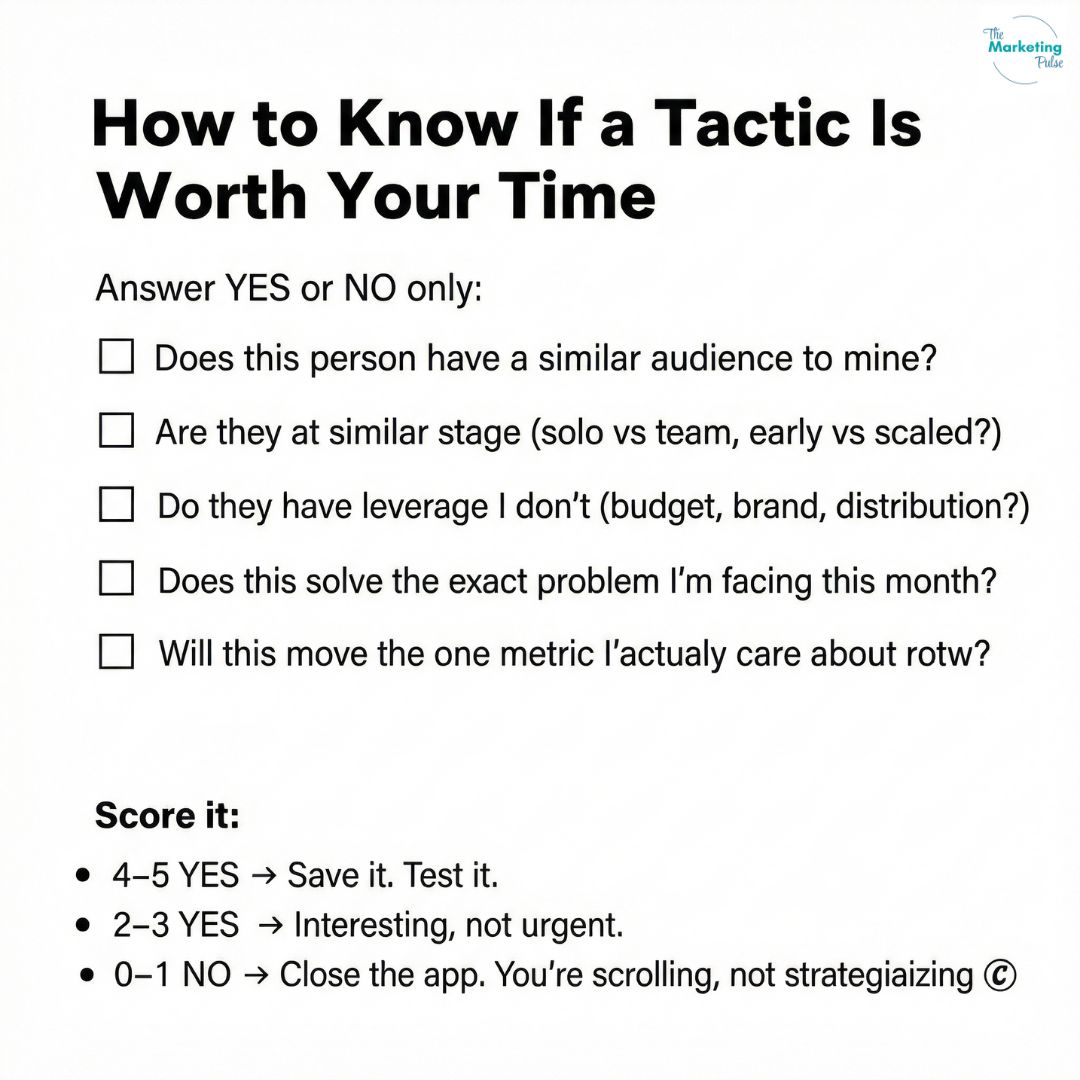 Every tactic works for someone. That’s why the takes are so loud. The problem isn’t the noise. It’s trying to listen to all of it at once. Which is exactly how good strategies get overcomplicated and stalled.
