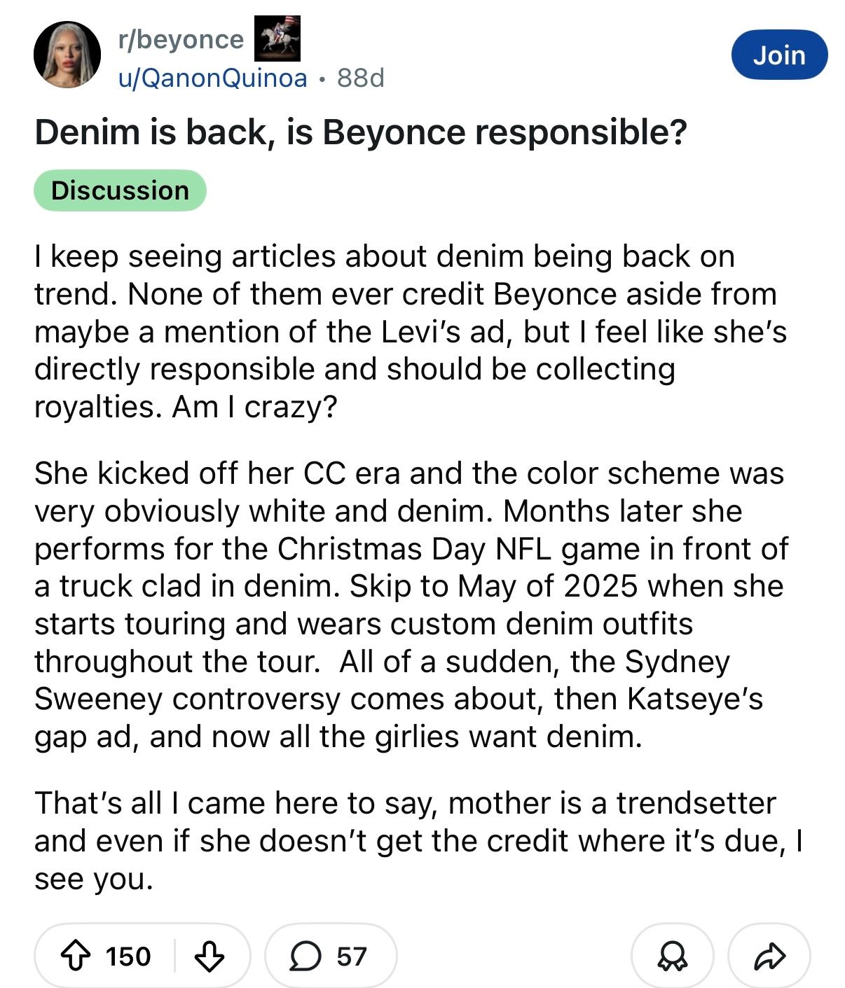 It’s impossible to discuss American Eagle’s Sydney Sweeney collaboration without mentioning Levi’s partnership with Beyoncé, both highlights of the year. The campaign during her "Cowboy Carter" era was a masterclass in strategy done right, earning positive public perception, boosting sales, and showing how alignment with brand values and culture can amplify impact.